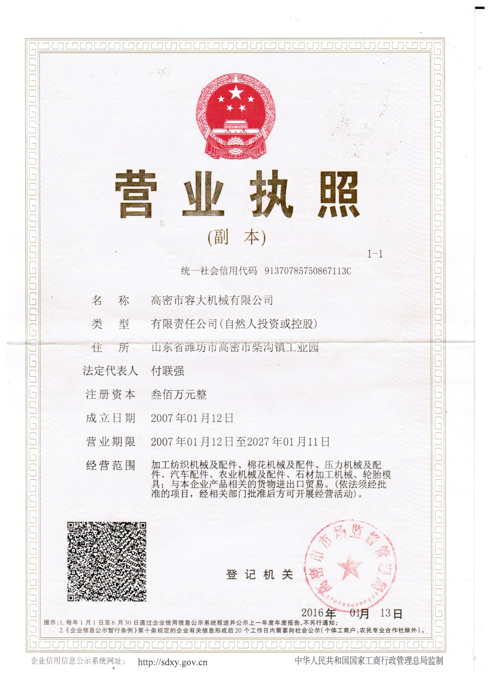 高密市容大機(jī)械有限公司 |
